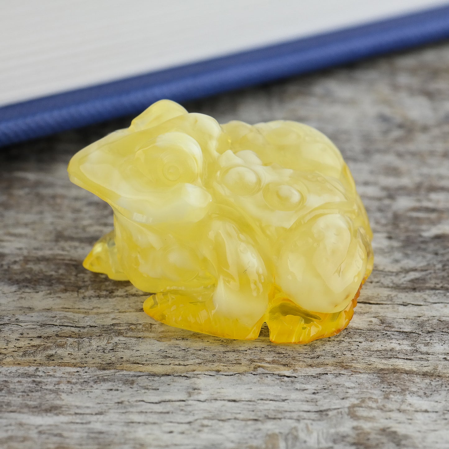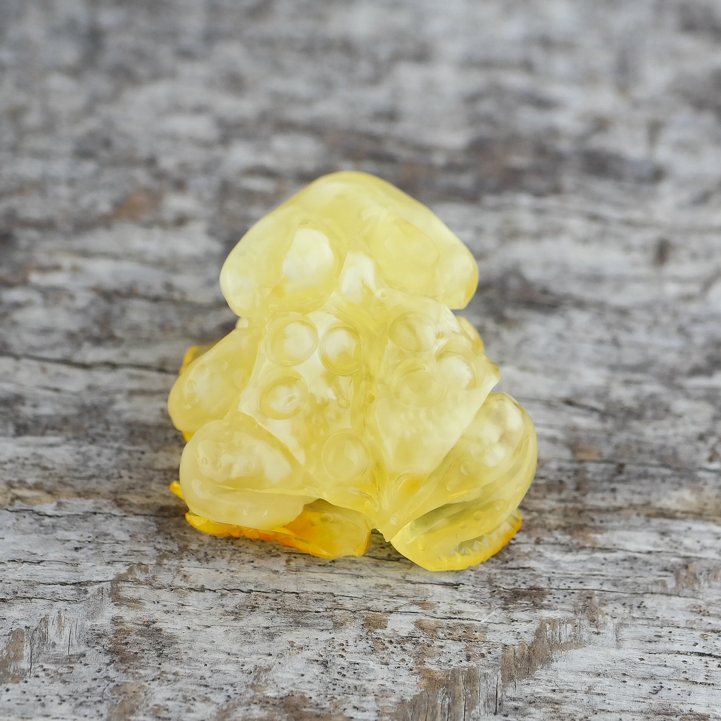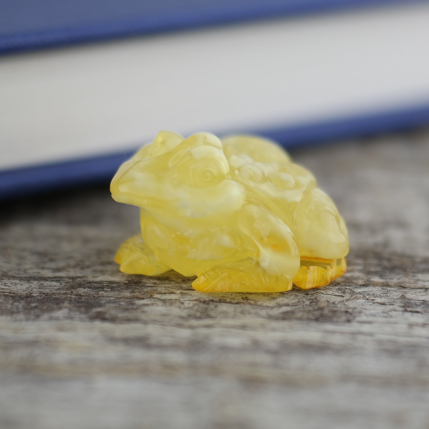 Hand carved Baltic amber frog for home decor
