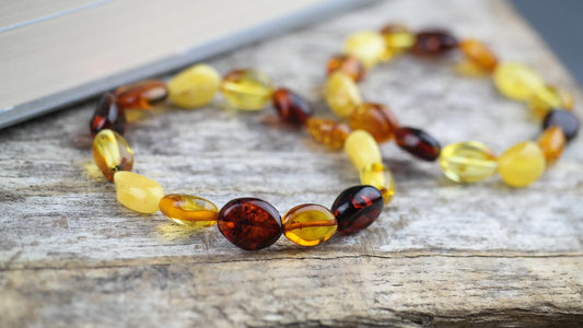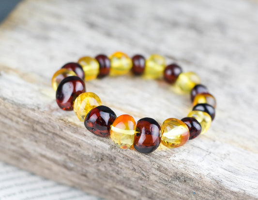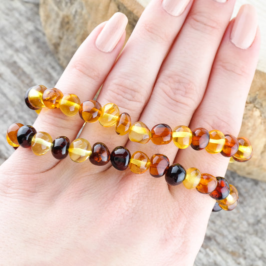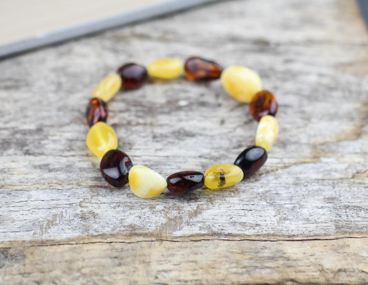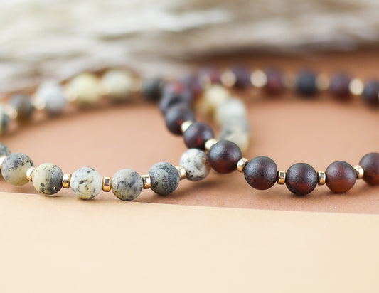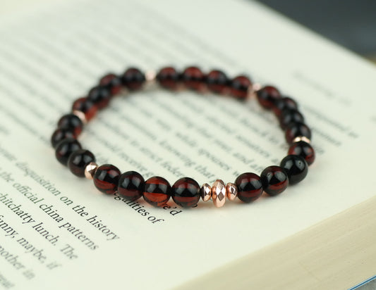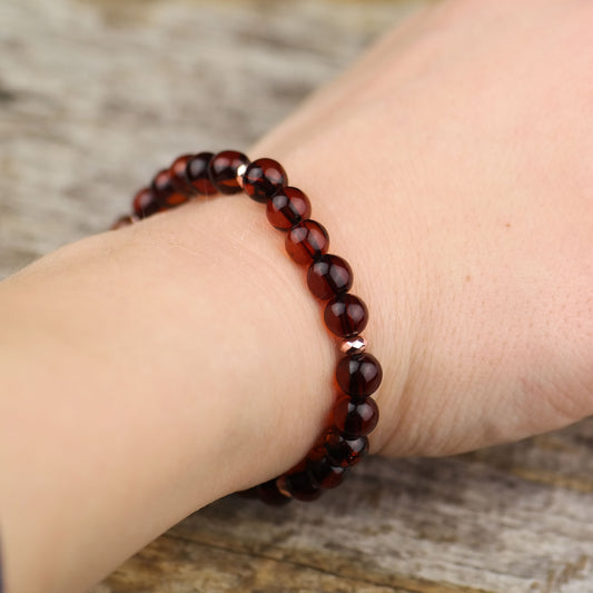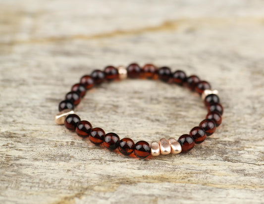 Stylish natural Baltic amber bracelet with rose gold colour details