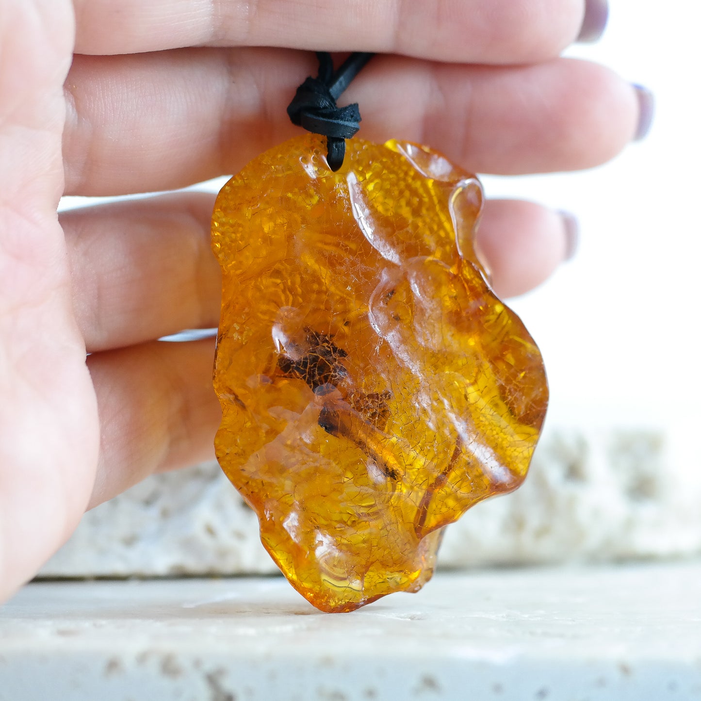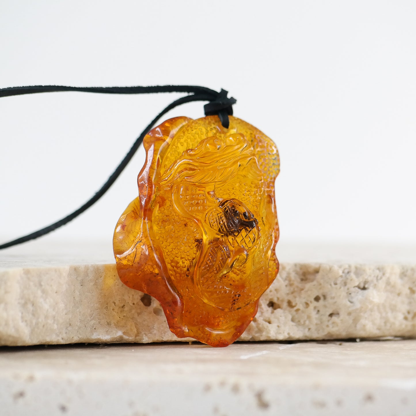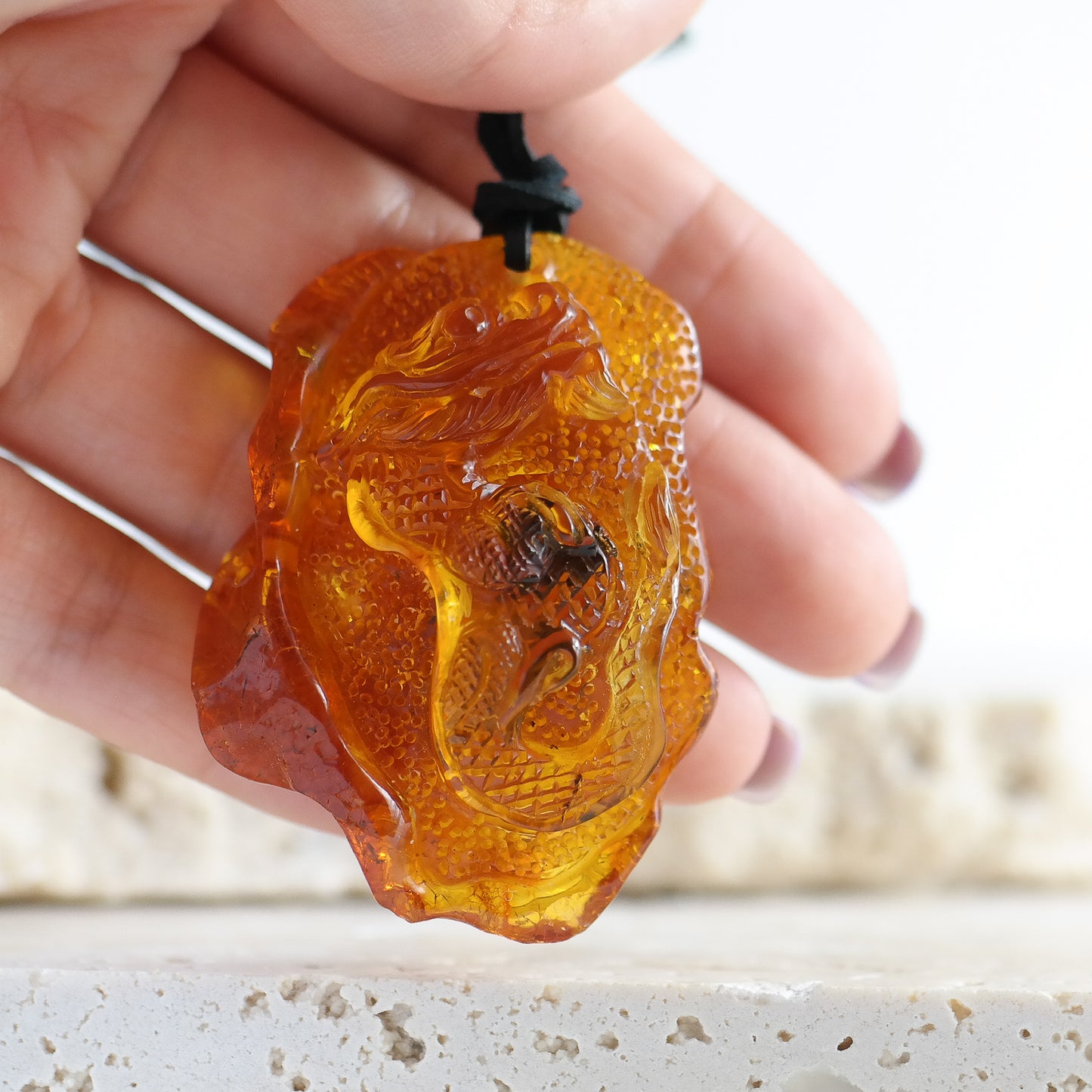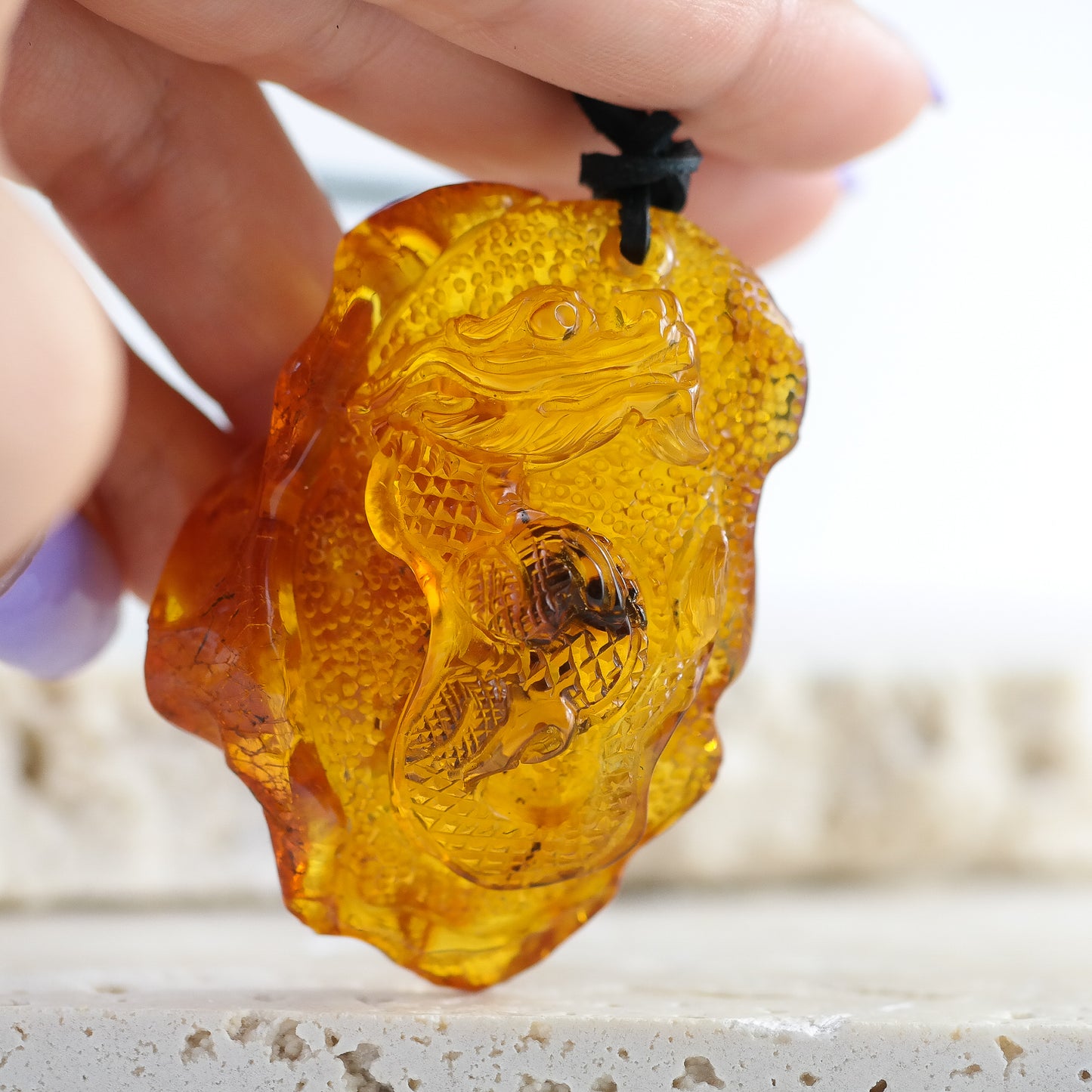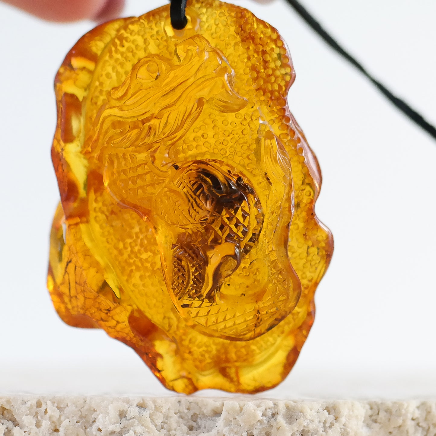 This unique dragon pendant was hand carved form a natural Baltic amber stone.
