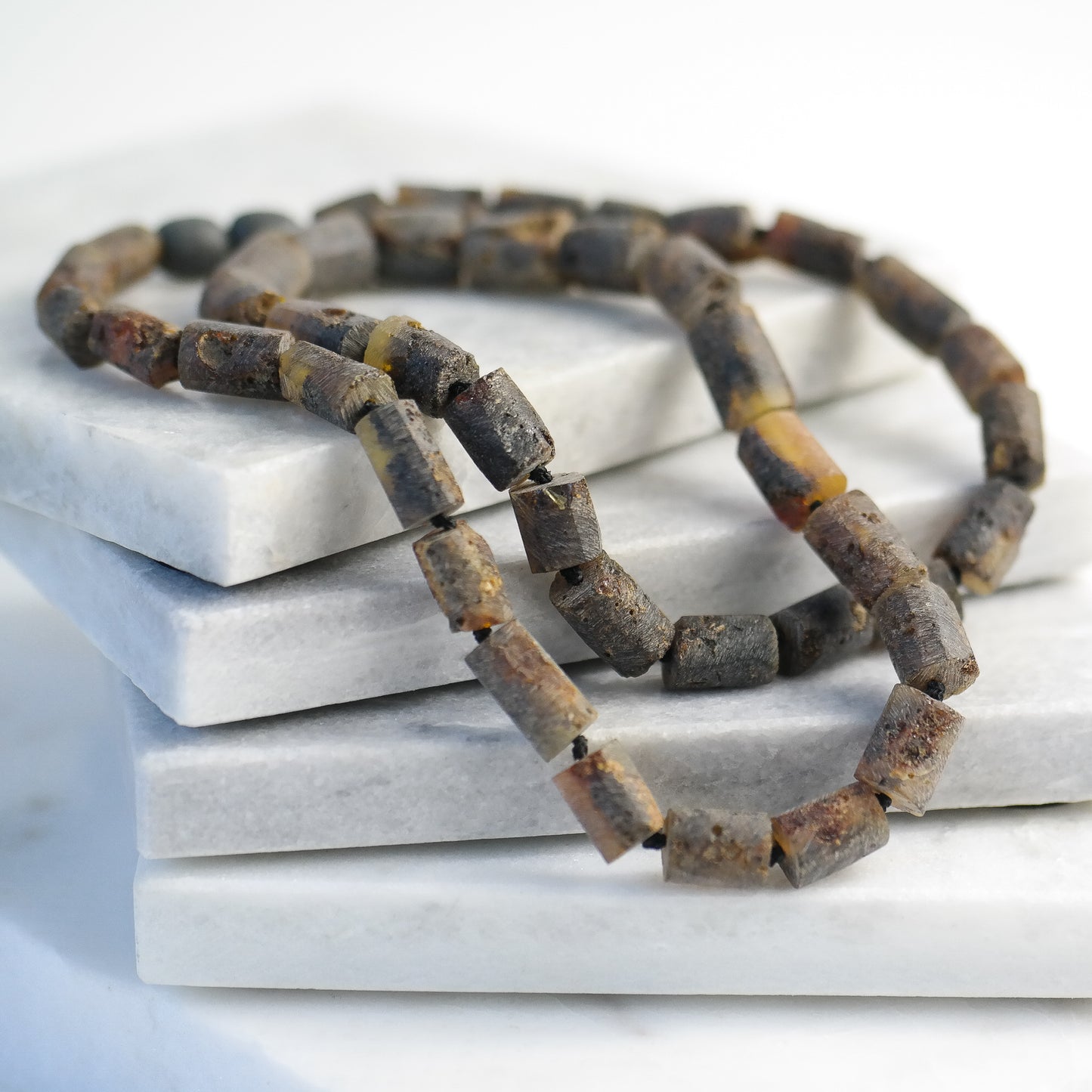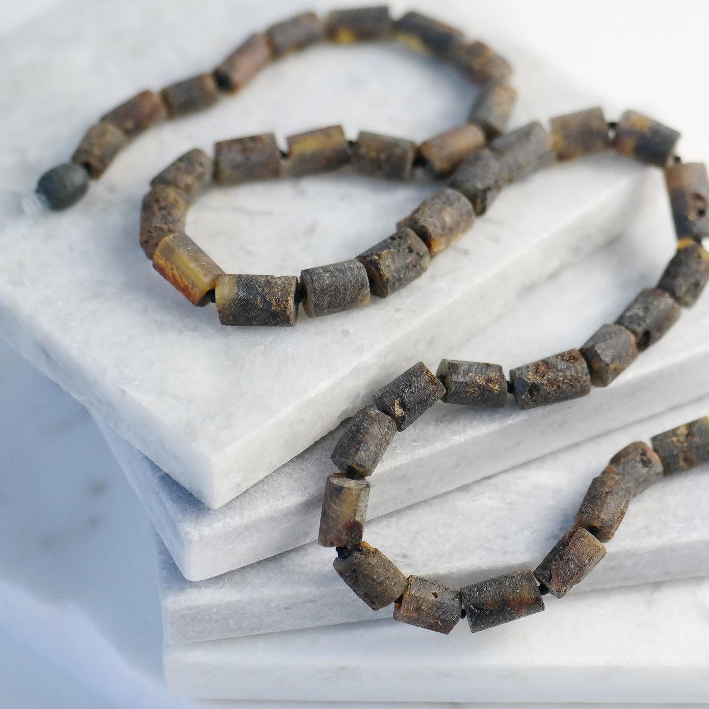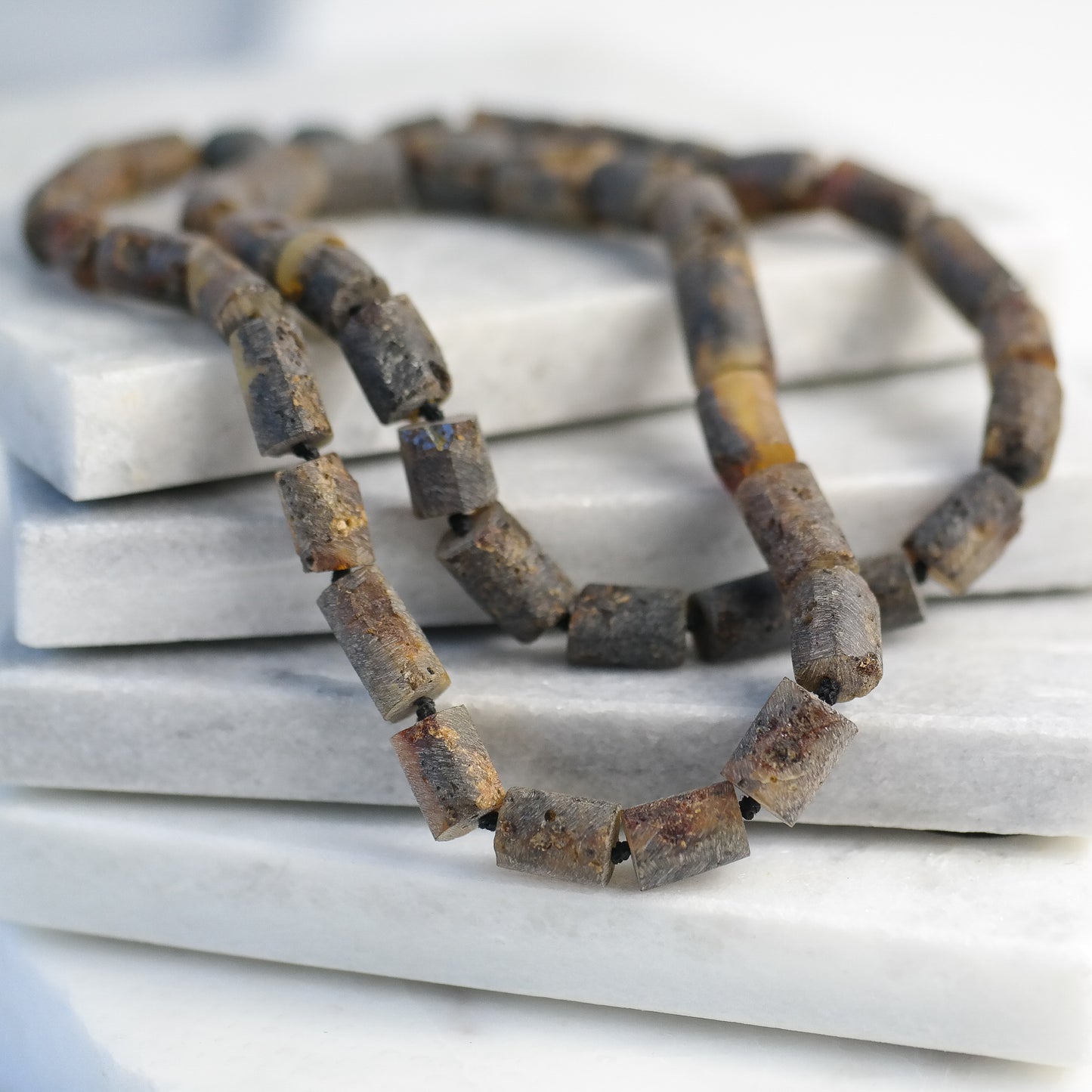 This natural Baltic amber necklace is made of tube shaped, raw amber beads.