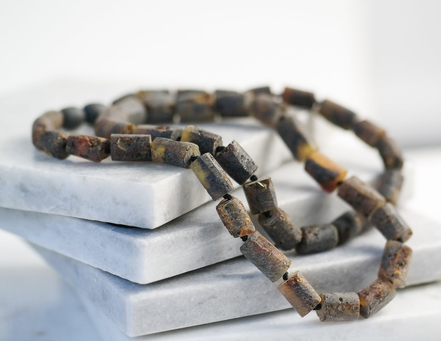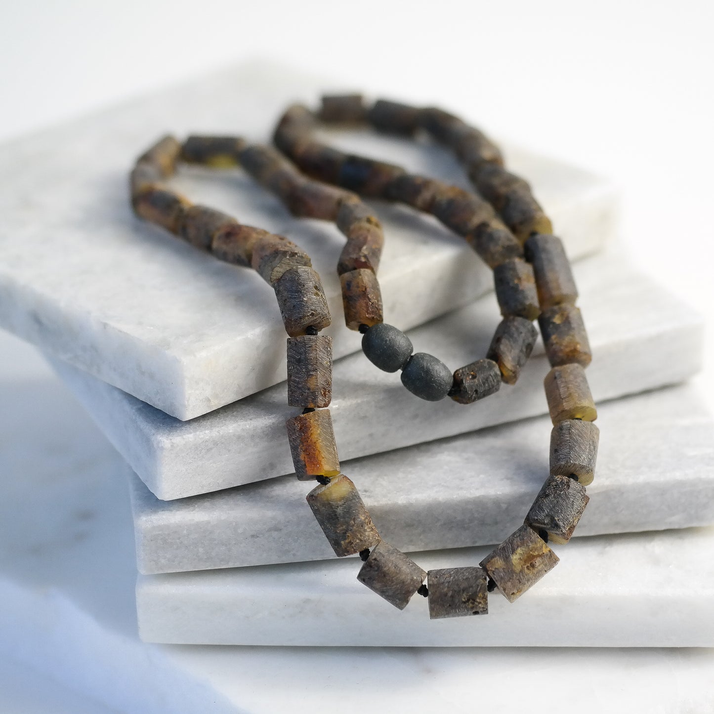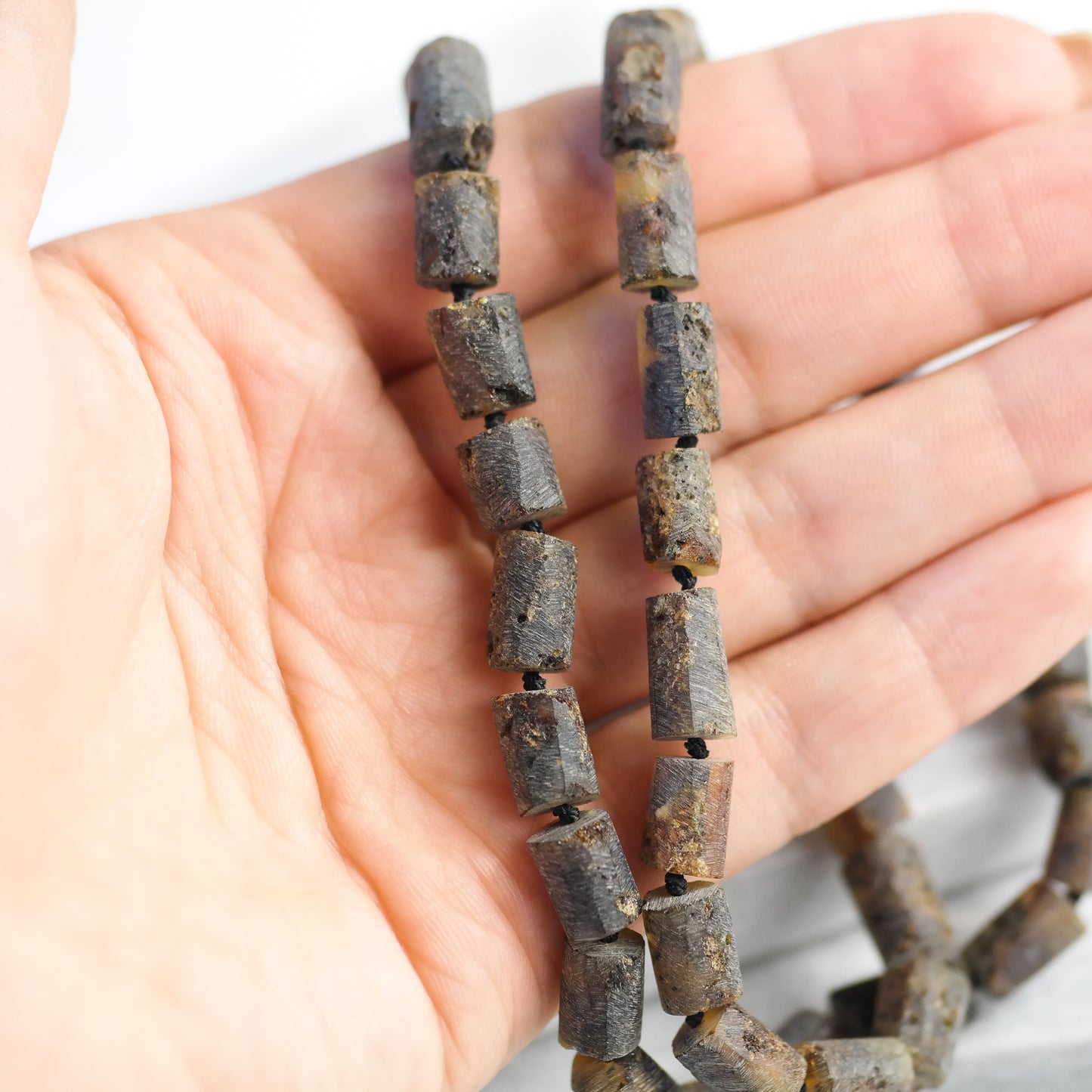 This natural Baltic amber necklace is made of tube shaped, raw amber beads.