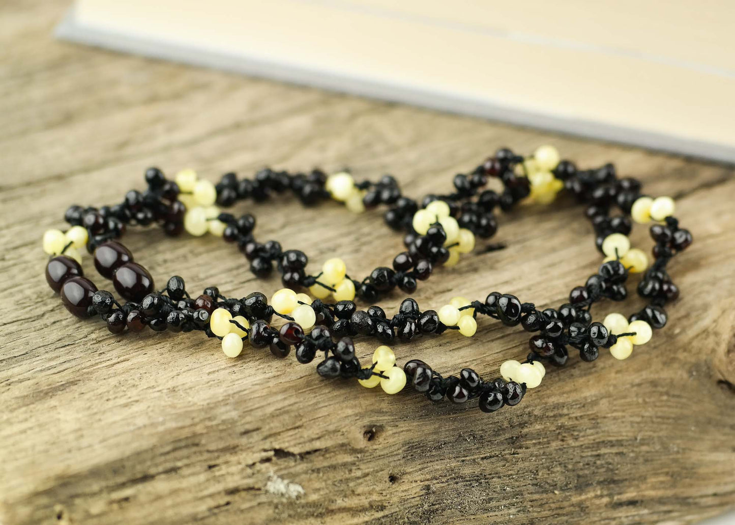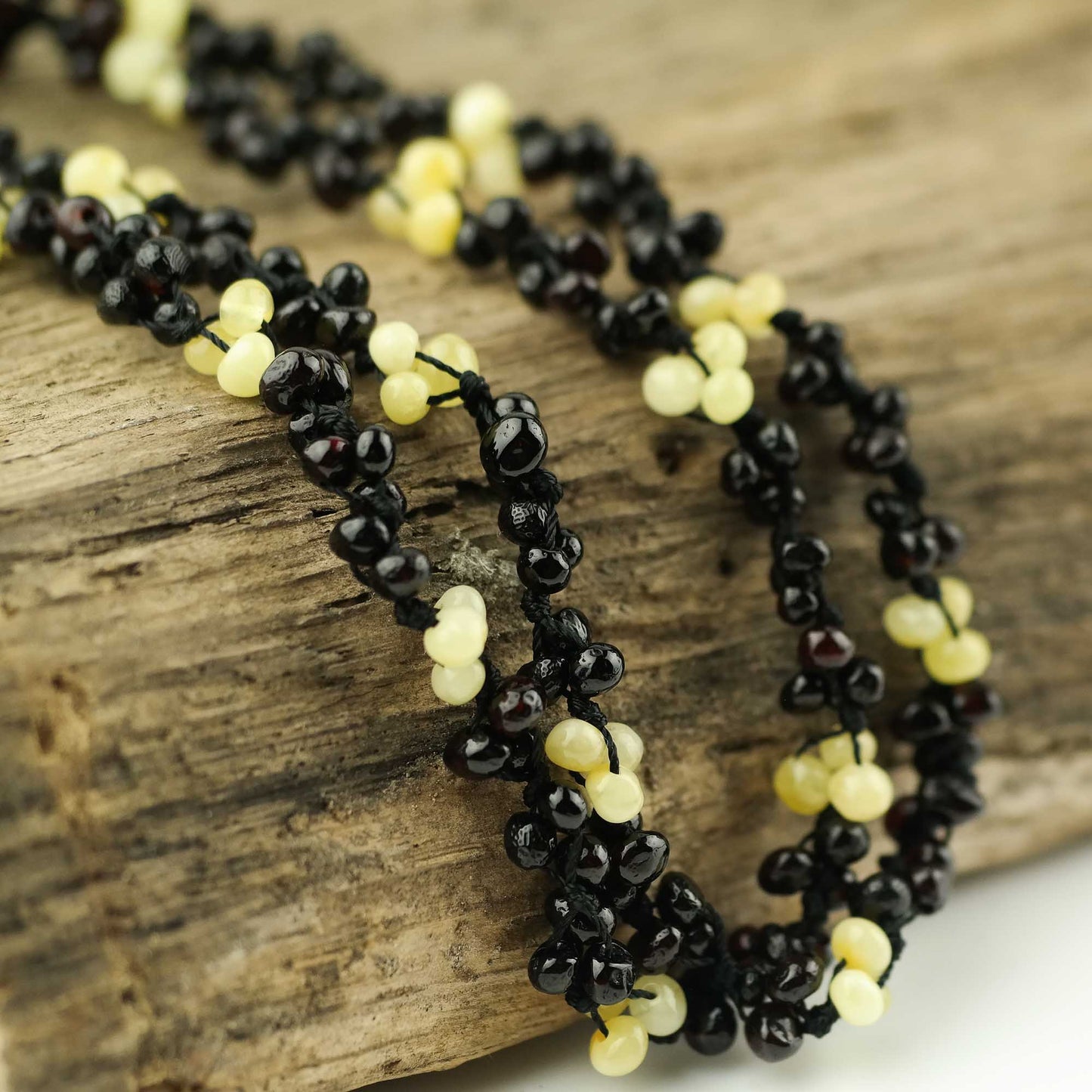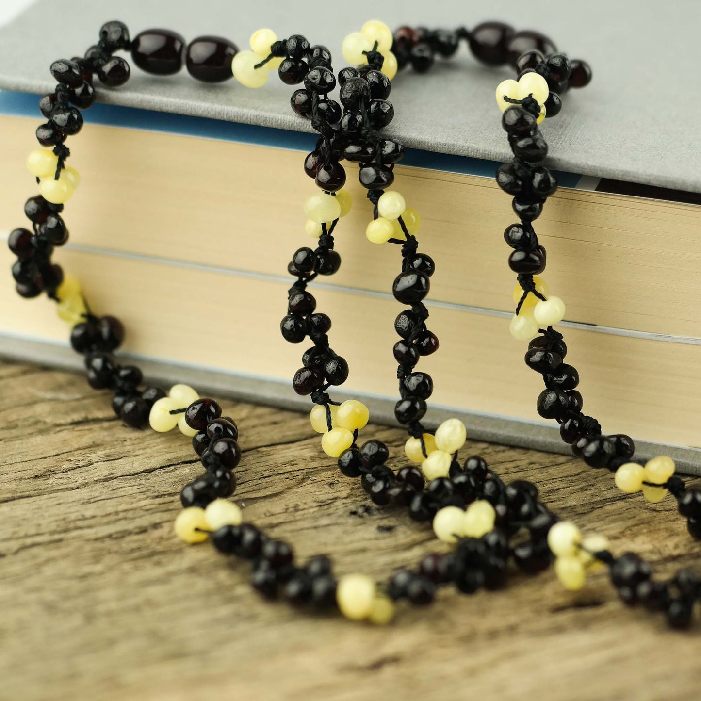 Handmade natural Baltic amber necklace made of baroque shaped amber beads. Knotted between each bead for safety, combined with screw clasp.