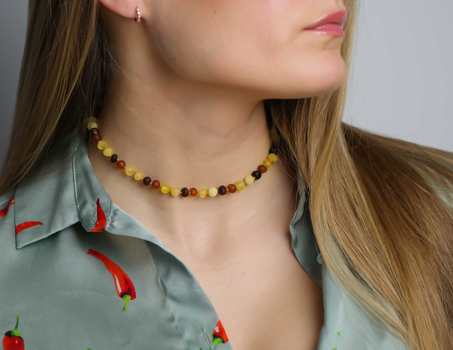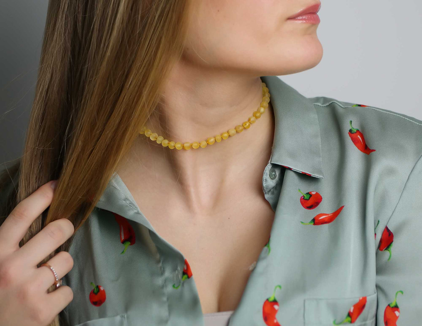 Discover our beautiful range of natural raw Baltic amber necklaces, handmade from beginning to end. Each necklace is strung on a durable nylon thread and hand knotted in between each bead for safety.