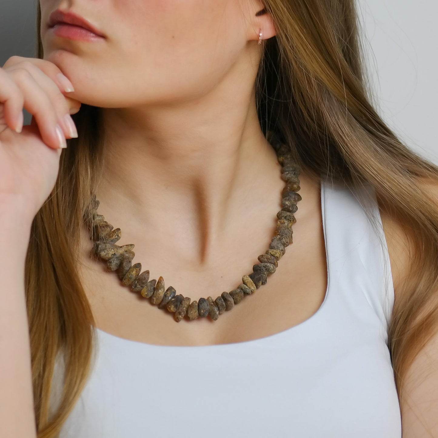 This natural Baltic amber necklace is made of chip style, raw amber beads. Perfect for those who love natural and unique handmade jewellery.