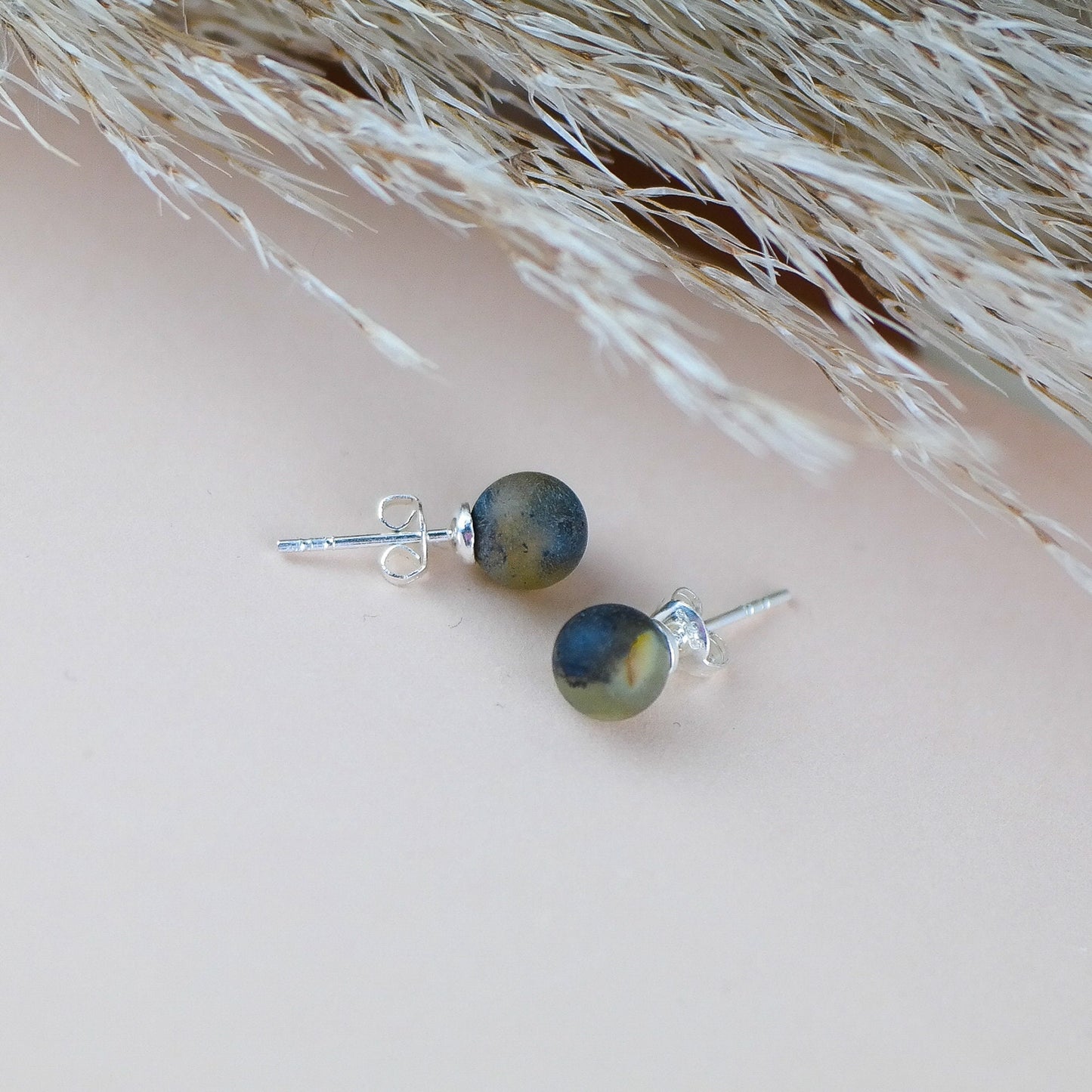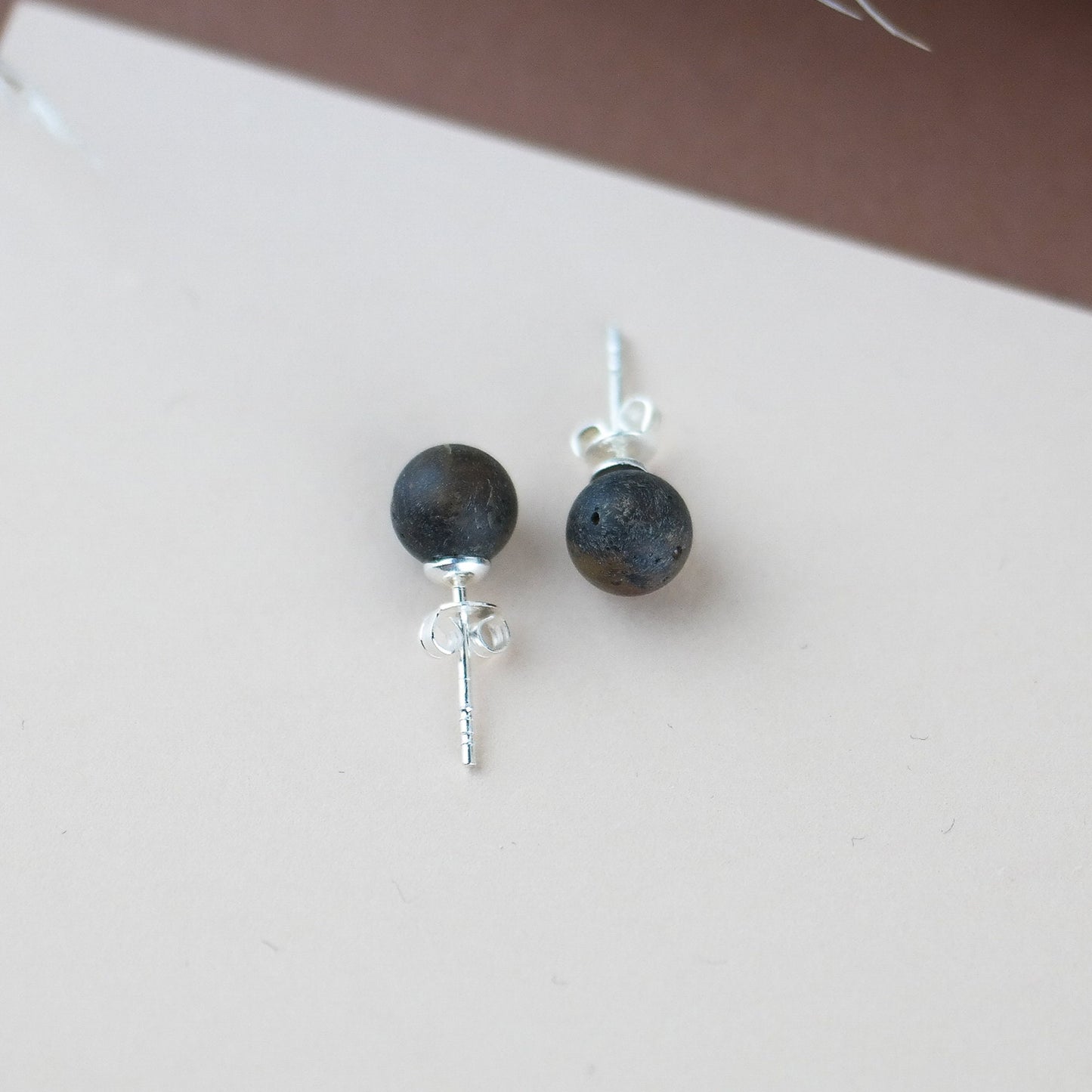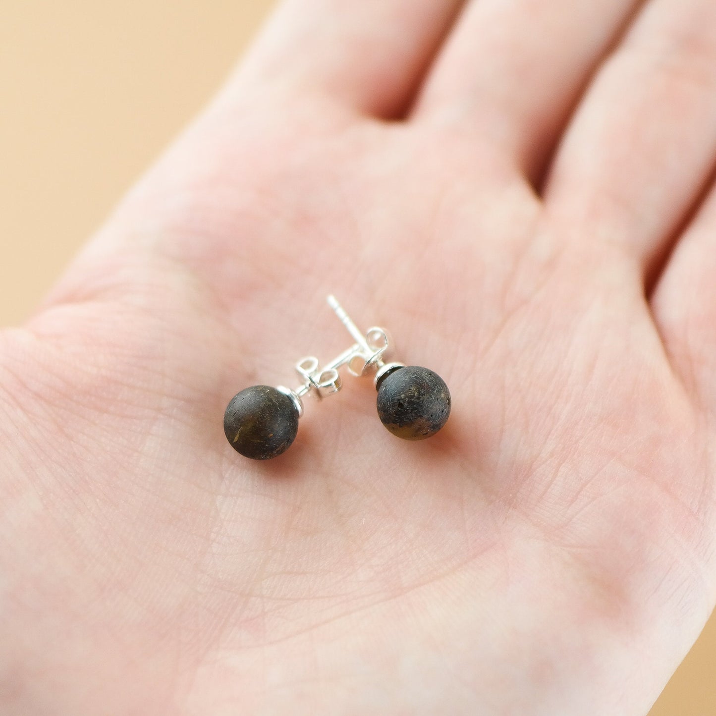 Stud earrings with natural Baltic amber beads. Bear in mind that amber is very unique gemstone so each bead might be slightly different that in the picture.