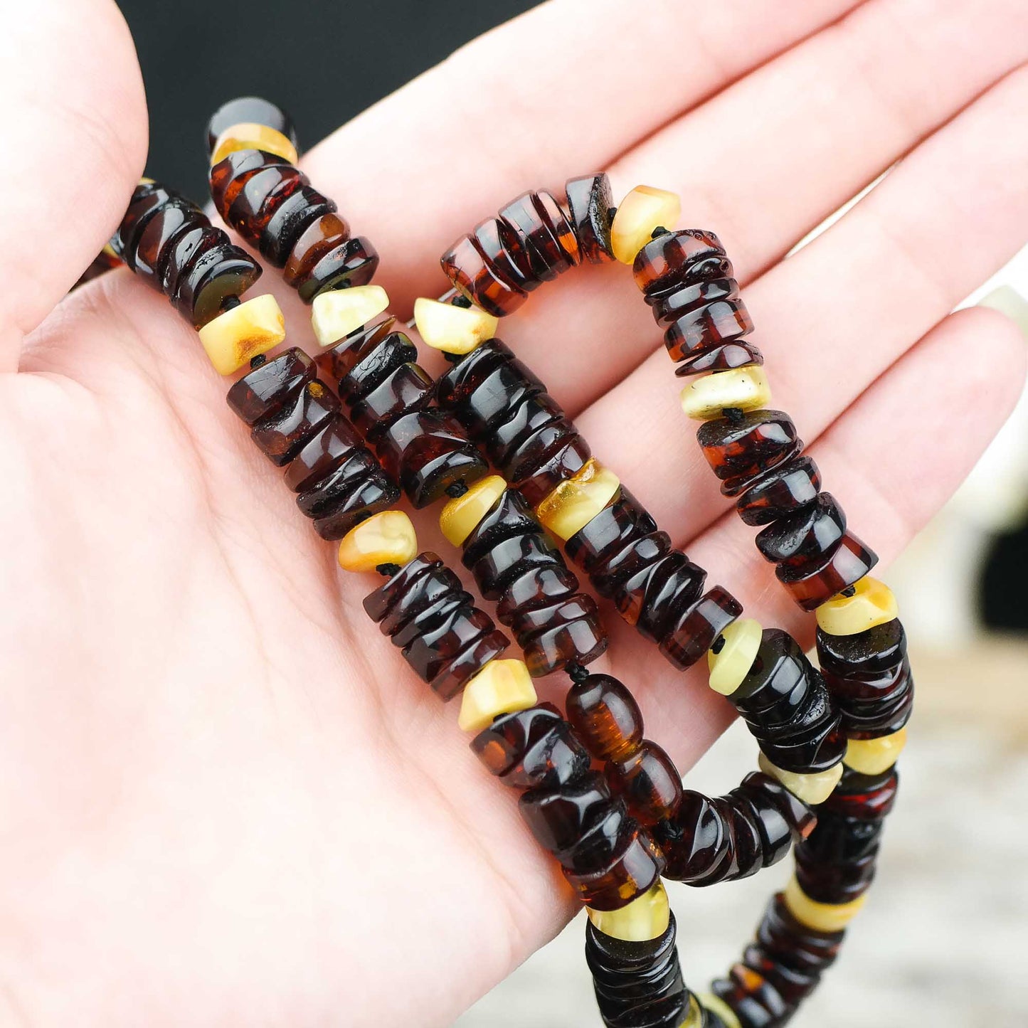 This natural Baltic amber necklace is made of tube shaped amber beads.