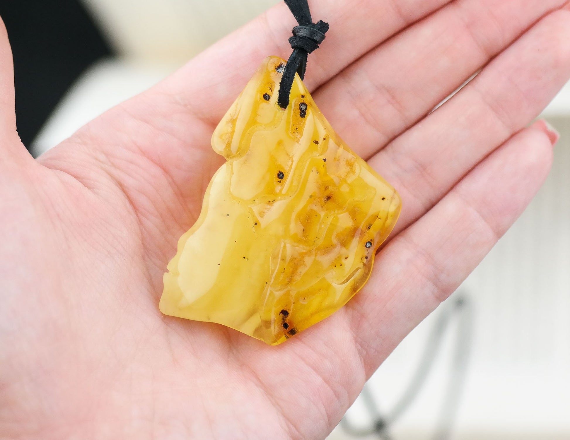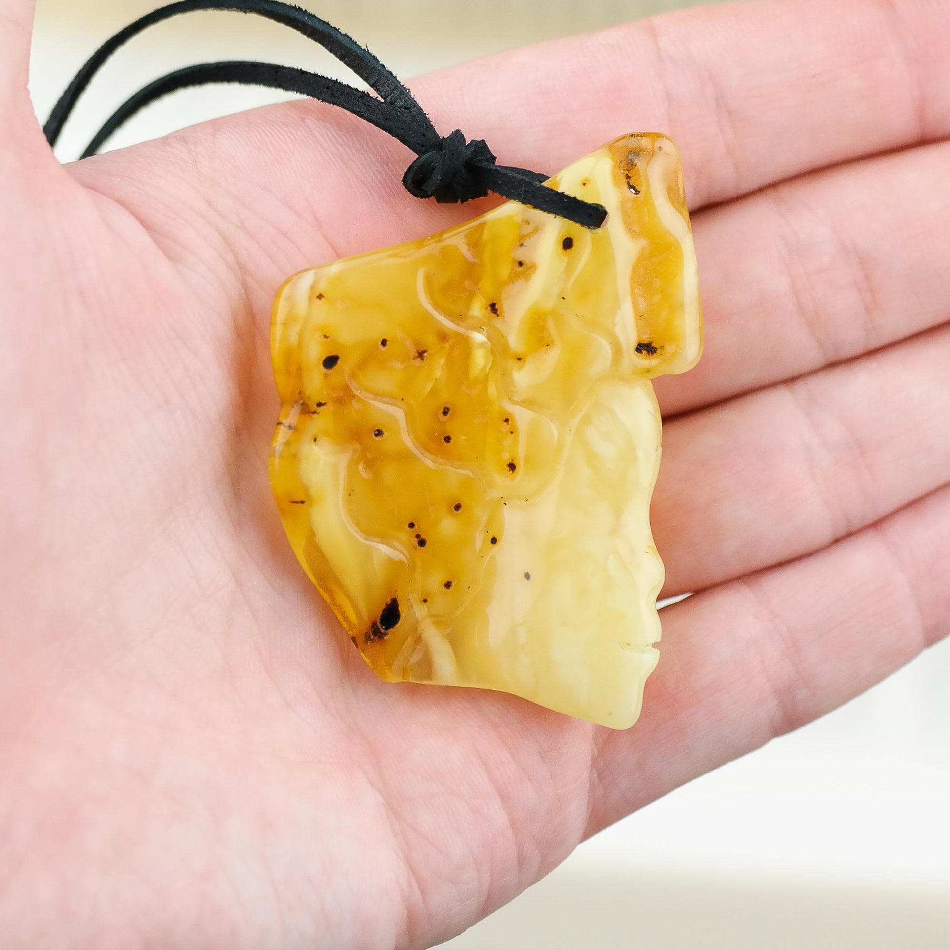 Life is too short to wear mass produced jewellery! This stunning pendant is made of 100% natural Baltic amber will certainly get noticed and make you feel unique. It's been made of amber stone that has been hand carved in to a beautiful women.