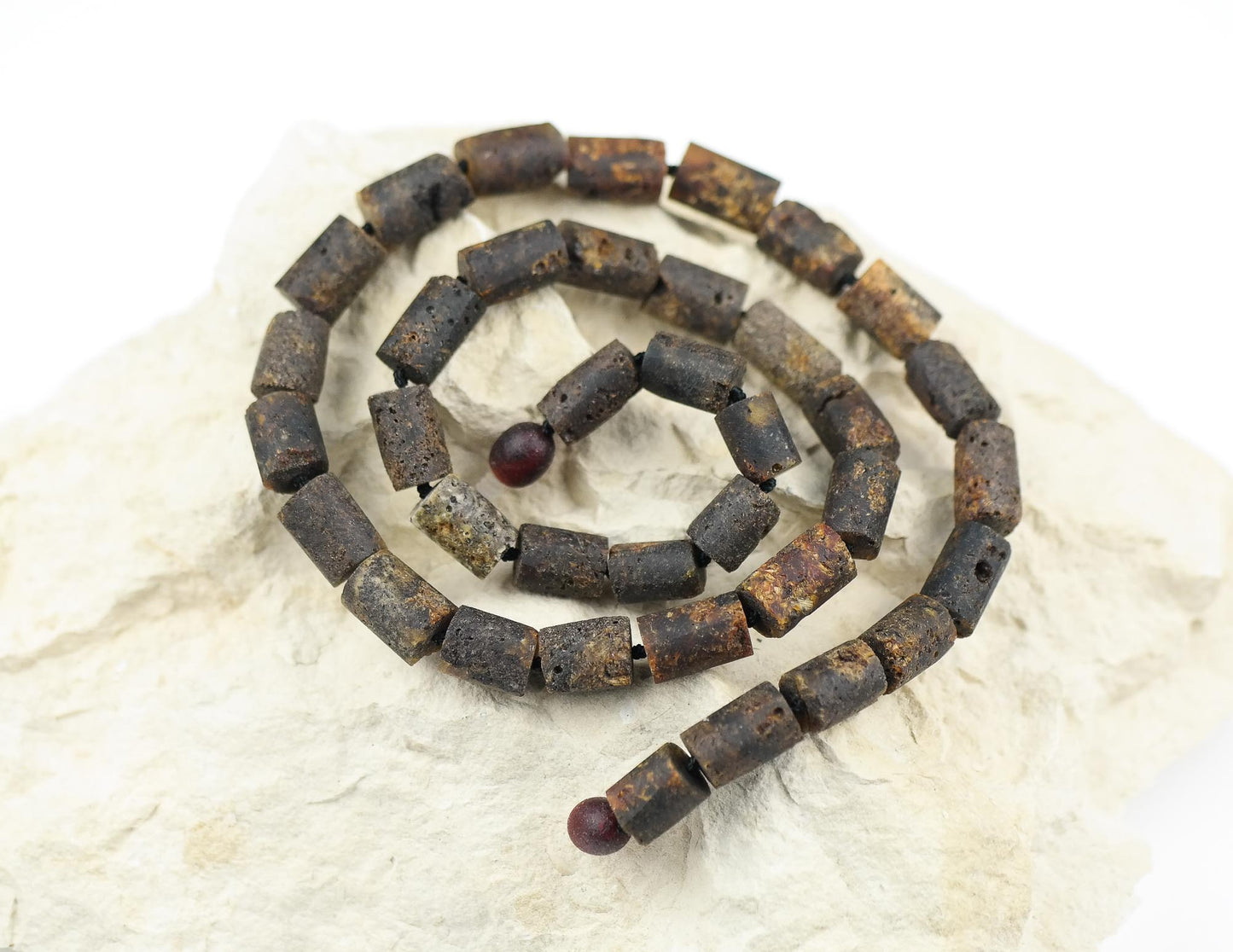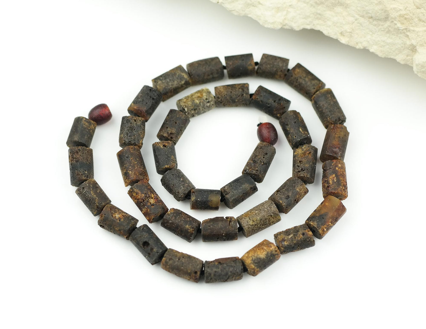 This natural Baltic amber necklace is made of tube shaped, raw amber beads.